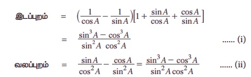 நிறுவுக: (sec A - cosec A) (1 + tan A + cot A) = tan A sec A - cot A cosec A.