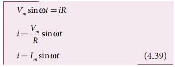 பாயும் மாறுதிசை மின்னோட்டம் i ஆனது R இடையே ஒரு மின்னழுத்த வேறுப்பட்டை உருவாக்குகிறது.
