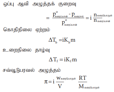 (இங்கு n என்பது ஒரு மூலக்கூறு பிரிகையடைந்து உருவாகும் அயனிகள்/ துகள்களின் எண்ணிக்கை)