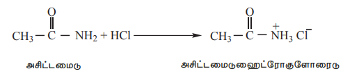 அசிட்டமைடு (காரத்தைப் போல), ஹைட்ரோ குளோரிக் அமிலத்துடன் வினைப்பட்டு உப்பைத் தருகிறது.
