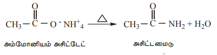 கார்பாக்சிலிக் அமிலங்களின் அம்மோனியம் உப்புகளை (அம்மோனியம் கார்பாக்சிலேட்டுகள்) வெப்பப்படுத்தும்போது , அவை ஒரு நீர் மூலக்கூறை இழந்து அமைடுகளை உருவாக்குகின்றன.