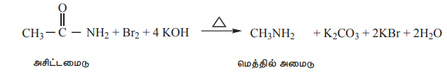 காரங்களின் முன்னிலையில் அமைடுகள், புரோமினுடன் வினைப்பட்டு மூல அமைடு மூலக்கூறைவிட ஒரு கார்பன் குறைவாக உள்ள ஓரிணைய அமீனை தருகின்றன.