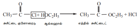 2) ஆல்கஹால்களுடன் வினைப்பட்டு (ஆல்கஹால்பகுப்பு) எஸ்டர்களைத் தருகின்றன.