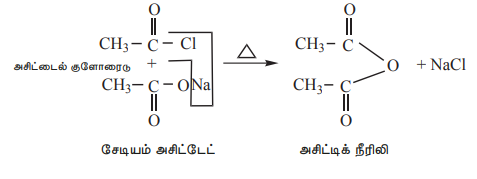 தயாரிப்பு, வேதிப் பண்புகள் - அமில நீரிலி | 12th Chemistry : UNIT 12 : Carbonyl Compounds and Carboxylic Acids