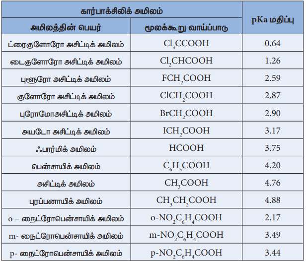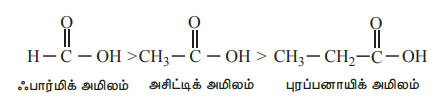 i) எலக்ட்ரான் உள்தள்ளும் ஆல்கைல் தொகுதி அமிலத்தன்மையை குறைக்கின்றது.