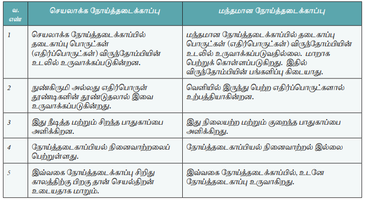 அட்டவணை 8.2 செயலாக்க மற்றும் மந்தமான நோய்த்தடைகாப்புகளுக்கிடையேயான வேறுபாடுகள்