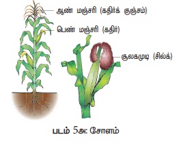 மக்காச்சோள மலர்கள் அல்லது மற்ற தானிய மலர்கள், பூச்சிகளால் மகரந்தச் சேர்க்கையுறும்