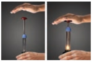 பிஸ்டனை மிக வேகமாக அழுத்தும் போது உருவாகும் வெப்பத்தினைக் குறுகிய நேரத்தில் சூழலுக்குக் கடத்த இயலாது. எனவே வாயுவின் வெப்பநிலை விரைவாக உயரும். இது படத்தில் காட்டப்பட்டுள்ளது. இத்தத்துவம் டீசல் இயந்திரங்களில் பயன்படுத்தப்படுகிறது. காற்றுபெட்ரோல் கலவையை வெப்பப்பரிமாற்றமில்லா முறையில் மிக வேகமாக அமுக்கும்போது அக்கலவையின் வெப்பநிலை தீப்பற்றும் அளவுக்கு மிக வேகமாக உயரும்.