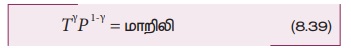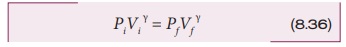 சமன்பாடு (8.35) இல் இருந்து நாம் அறிவது என்னவென்றால், வாயு ஒரு சமநிலை நிலையிலிருந்து (Pi,Vi) மற்றொரு சமநிலை நிலைக்கு (Pf ,Vf) வெப்பப்பரிமாற்றமில்லா முறையில் செல்லும் போது அவ்வாயு பின்வரும் நிபந்தனைக்கு உட்படும்.