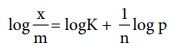 இங்கு வெட்டுத்துண்டானது log k மதிப்பையும் சாய்வு 1/n மதிப்பையும் தருகிறது.