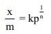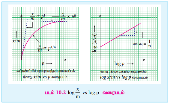 x என்பது ‘m' கிராம் நிறையுள்ள பரப்பு பொருளின் மீது கவரப்பட்ட பரப்பு கவர் பொருளின் அளவு.