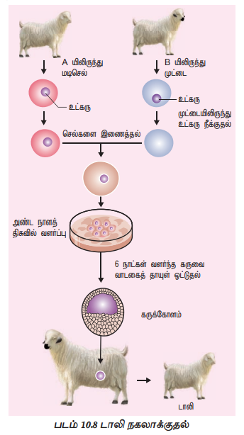 ஐயன் வில்மட் மற்றும் கேம்ப்பெல் முதிர்ந்த செம்மறி ஆட்டின் 227 மடிசெல்களை 227 உட்கரு நீக்கிய அண்ட செல்களுடன் ஒன்றிணைத்தனர். 6 நாட்கள் கருவளர்ச்சிக்குப்பின் 29 வளர்கருக்களை வாடகைத்தாய் கருப்பையில் பதித்தனர். அவற்றில் ஒன்று மட்டுமே 'டாலி' யாக உற்பத்தியானது.