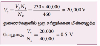 230 V AC மூலத்துடன் இணைக்கப்பட்டால், துணைச்சுருளின் ஒரு சுற்றில் உருவான மின்னழுத்த
