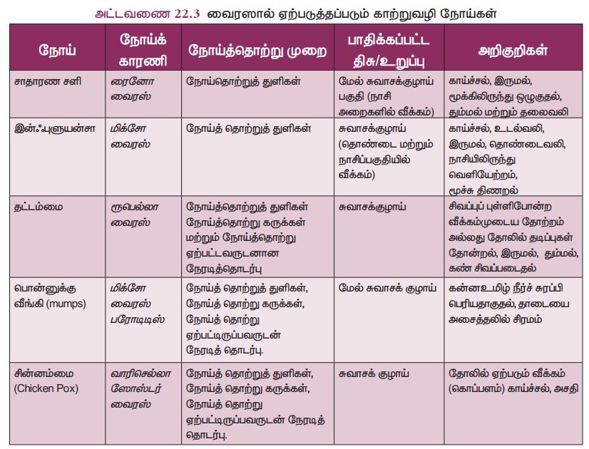 9 ஆம் வகுப்பு அறிவியல் : அலகு 22 : நுண்ணுயிரிகளின் உலகம் : காற்றின் மூலம் பரவும் நோய்கள் - வைரஸ் மற்றும் பாக்டீரியாவால் ஏற்படும் நோய்கள் : 9 ஆம் வகுப்பு