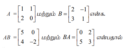 (i) AB மற்றும் BA என்பவை வரையறுக்கப்பட்டிருந்தாலும், AB = BA ஆக இருக்கவேண்டிய அவசியமில்லை.