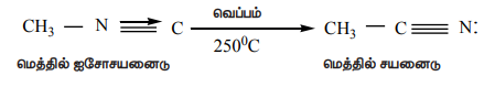 ஆல்கைல் ஐசோசயனைடுகளை 250°C வெப்பநிலையில் வெப்பப்படுத்தும் போது, அவைகள் அதிக நிலைப்புத்தன்மையுடைய மாற்றிய சயனைடுகளைத் தருகின்றன.