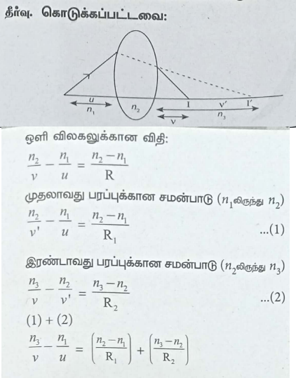 ஒற்றை கோளகப்பரப்பில் ஏற்படும் ஒளிவிலகல் (Refraction at single spherical surface) - எடுத்துக்காட்டு கணக்குகள்