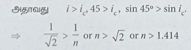 அதாவது i > ic, 45 > ic, sin 45o > sin ic.