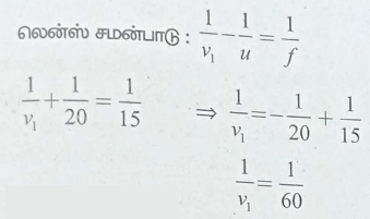 இச்சூழ்நிலையில் பின்வருவனவற்றைக் காண்க. (அ) இறுதி பிம்பத்தின் நிலை, (ஆ) பிம்பத்தின் தன்மை , (இ) பிம்பத்தின் அளவு