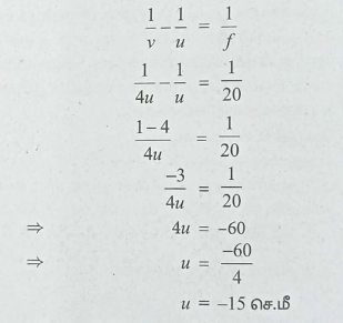 u = + 60 செ.மீ ; f = 15 செ.மீ