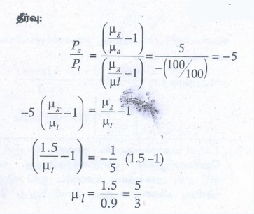 6. ஒளிவிலகல் எண் 1.5 கொண்ட கண்ணாடியால் செய்யப்பட்ட லென்ஸ் ஒன்றின் திறன் + 5.0 D இந்த லென்ஸ் n ஒளிவிலகல் எண் கொண்ட திரவம் ஒன்றில் மூழ்கவைக்கப்படும் போது குவியத் தூரம் 100 cm கொண்ட விரிக்கும் லென்சாக மாறுகிறது எனில், திரவத்தின் ஒளிவிலகல் எண் n இன் மதிப்பு என்ன?