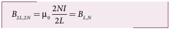 ஓரலகு நீளத்திற்கு சுற்றுகளின் எண்ணிக்கை n= N/2πr2. எனவே S புள்ளியில் உள்ள காந்தப்புலம்