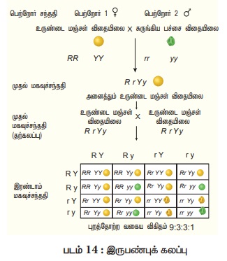 சோதனை எண் 14: மெண்டலின் இருபண்புக் கலப்பு விகிதத்தில் அறியப்பட்ட மாதிரி