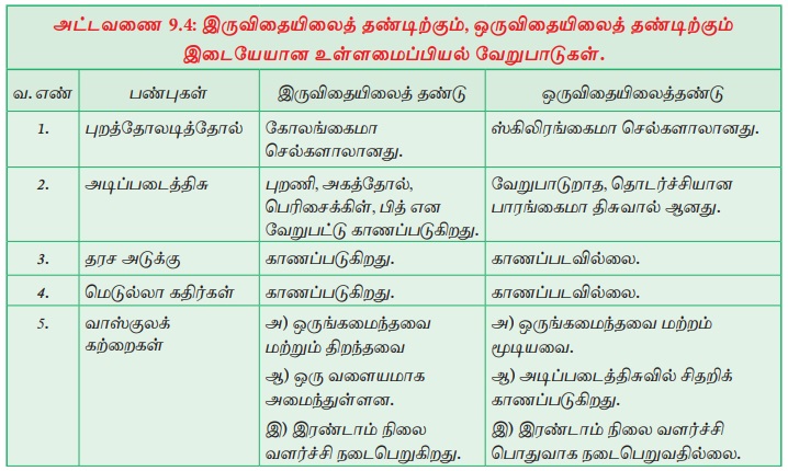 இருவிதையிலைத் தண்டு பண்புகள் : (அ) ஒருங்கமைந்தவை மற்றும் திறந்தவை