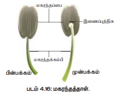 மகரந்தப்பை: மேற்புறம் நுண்வித்தகங்களைக் கொண்ட பருத்த பகுதி. மகரந்த கம்பி: மகரந்தத்தாள்களின் காம்பு.