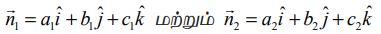 a1x + b1y + c1z + d1 = 0 மற்றும் a2x + b2y + c2z + d2 =0 ஆகிய தளங்களின் செங்கோட்டு வெக்டர்கள் முறையே