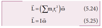 முன்னர் விவாதித்தது போல சமன்பாடு 5.22 மற்றும் 5.23 இல் கோவை உறுப்பு mr2 ஆனது புள்ளி நிறையின் நிலைமத் திருப்புத்திறன் ஆகும். திண்மப் பொருளானது புள்ளி நிறைப்போன்ற பல துகள்களினால் உருவாக்கப்பட்டுள்ளது. எனவே திண்மப் பொருளின் நிலைம திருப்புத்திறன் என்பது அப்புள்ளி நிறைகளின் நிலைமத் திருப்புதிறனின் கூட்டுத் தொகை ( I = ∑mi ri 2 ) ஆகும். எனவே, பொருளின் கோணஉந்தமானது,