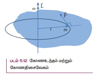 சுழலும் அச்சிலிருந்து r தொலைவில் புள்ளி நிறை m அமைந்துள்ளது. வட்டப்பாதையில் எந்தவொரு கணத்திலும் நேர்கோட்டுஉந்தமானது வட்டப்பதையின் தொடுகோட்டு திசையில் இருக்கும். கோண உந்தம்
