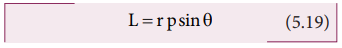 க்கும் இடைப்பட்ட கோணம் θ என்க எனவே அக்கணத்தில் கோண உந்தத்தின் எண்மதிப்பு