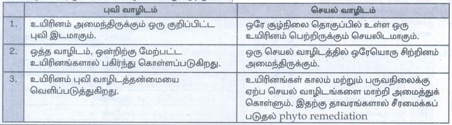 25. புவி வாழிடம் மற்றும் செயல் வாழிடம் வேறுபடுத்துக.