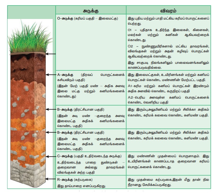 50. மண் அடுக்கமைவு என்றால் என்ன? மண்ணின் வெவ்வேறு அடுக்குகளைப் பற்றி விவரிக்கவும்