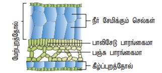 * இலையிடைத் திசுவானது பாலிசேடு மற்றும் பஞ்சு திசுவாக நன்கு வேறுபாடு அடைந்துள்ளது.