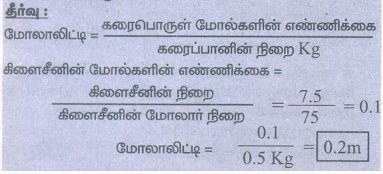 (i) ஒரு கிலோ கிராம் கரைப்பானில் கரைந்துள்ள கரை பொருளின் மோல்களின் எண்ணிக்கையே மோலாலிட்டி எனப்படும்.