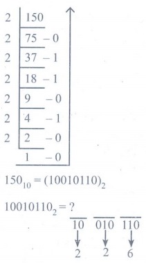 3. (150)10 க்கு நிகரான இருநிலை எண்ணாக மாற்றி, அதனை எண்ணிலை எண்ணாக மாற்றுக.
