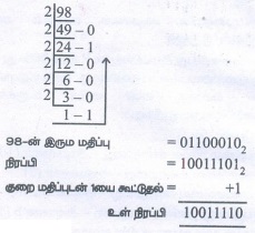விடை: ஒரு எண்ணின் 1ன் நிரப்பைக் காண கீழ்க்காணும் வழிமுறைகள் பின்பற்றப்பட வேண்டும்.