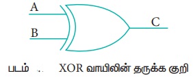 XOR வாயில்: என்பது (Exclusive OR) வாயில், இது தருக்க either/OR என்பது போலவே செயல்படும். ஏதேனும் ஒன்று அல்லது அனைத்து