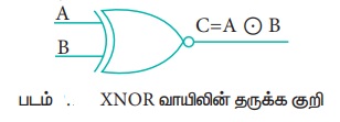 XNOR வாயில்: XNOR (Exclusive -NOR) வாயில் என்பது XOR வாயில் இருந்து வந்த வெளியீட்டினை, தலைகீழாக மாற்றி தரும். இரு உள்ளீடுகளும் சமமாக இருக்கும்