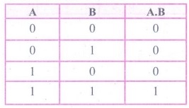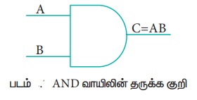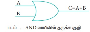 அறிவித்தால், A மற்றும் B மாறிகள் 0 அல்லது 1 என்ற மதிப்பை ஏற்கும். AND வாயிலின் தருக்க குறி.