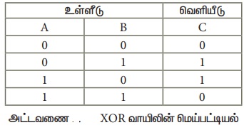 விடை: XOR வாயிலின் மெய் பட்டியல்:
