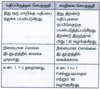 ஒரு மதிப்பை சேமிக்க பயன்படுத்தப்படுகிறது. செயற்குறியின் இடது பக்கத்தில்