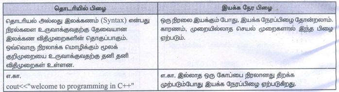 (Syntax error) மற்றும் இயக்க நேர பிழை