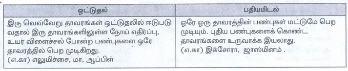 * இரு வெவ்வேறு தாவரங்கள் ஒட்டுதலில் ஈடுபடுவதால் இரு