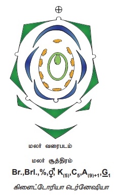 வட்டம் (9) இணைந்து ஒரு கற்றையாகவும் 10 வது மகரந்தத்தாள் தனித்து ஒரு