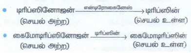 • கைமோடிரிப்ஸின் குறிப்பிட்ட அமினோ அமிலத்துடன் இணைந்துள்ள பெப்டைடு பிணைப்புகளை நீராற்பகுக்கின்றன.