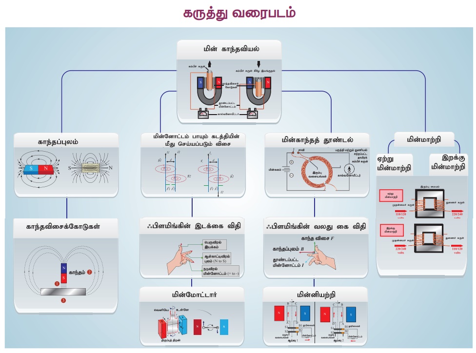 • ஒரு மூடிய சுற்றுடன் இணைக்கப்பட்ட காந்தப்பாயத்தில் ஏற்படும் மாற்றம் காரணமாக தூண்டப்பட்ட மின்னியக்கு விசை உருவாகும் நிகழ்வு மின்காந்தத் தூண்டல் எனப்படும்