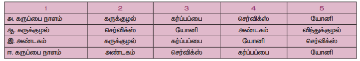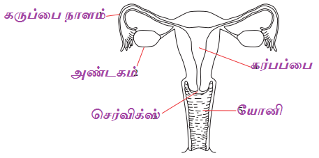 ஈ. கருப்பை நாளம், அண்டகம், செர்விக்ஸ், கர்பப்பை, யோனி